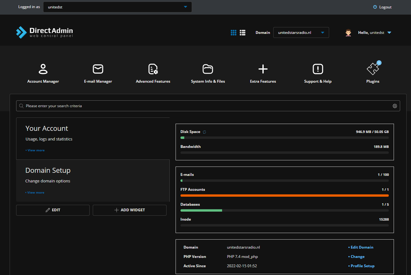 Directadmin is een ontzettend gebruiksvriendelijk controlepaneel om het hosten en beheren van websites, emails en online applicaties een stuk makkelijker te maken.